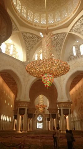 Tiempo de tomar un viaje.  Nuestra destinación era Abu Dabi, la capital de EAU.  En la mañana, primero teníamos que comprar los boletos de camión a Omán.  Eso nos atrasó un poco; y no llegamos a Abu Dabi hasta las 2 pm.  No importo, nada más queríamos ver una cosa, ver la Mezquita Sheikh Zayed.  La mezquita fue idea del fallecido Sheikh, la Mezquita es ridículamente espectacular.  Es una mezcla de estilos de arquitecturas, es gigante, relucientemente blanca, con piezas extravagantes, como las columnas en forma de palmeras datileras.