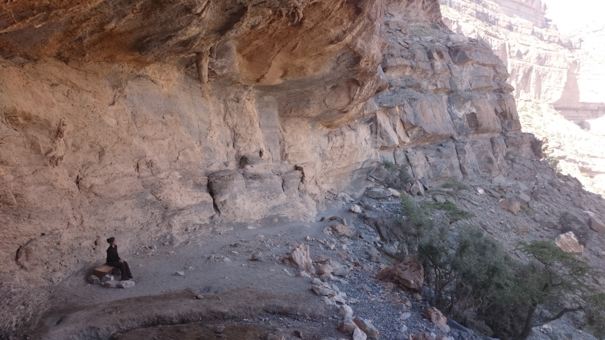 The reason we’re staying at Bahla is not because of the djinns. Rather, Jebel Shams, the highest point in the Middle East, is a mere 30 km away. Our car is not equipped to reach the trailhead from which we could climb to the highest point, but we can still access some pretty good trails. Our goal was to park at the bottom of the mountain, climb up to the top, complete the “balcony walk” along the rim of a canyon, and return the way we came.