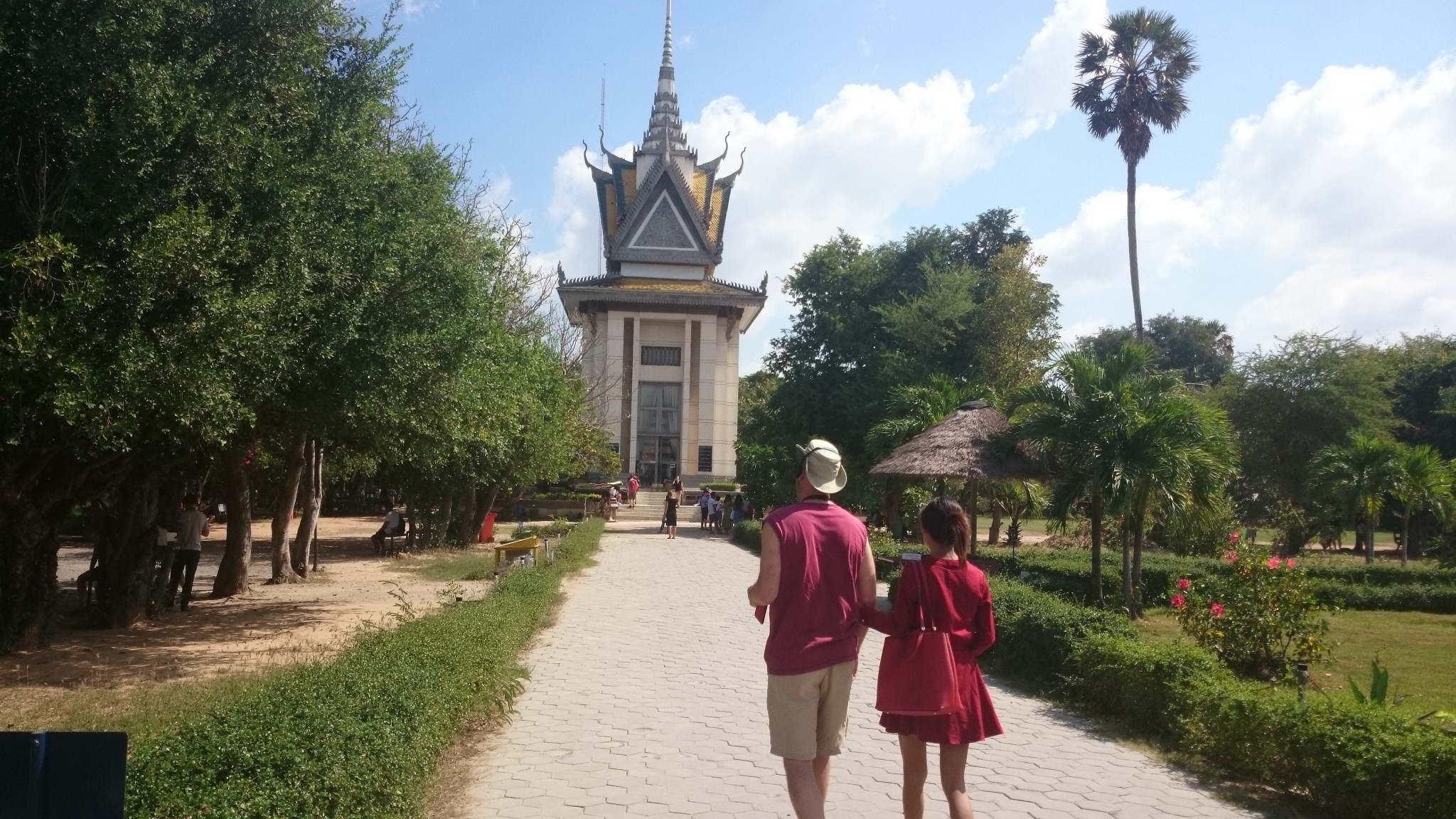 Like the S21 prison, The Killing Fields are now a memorial. For context, there are several hundred “killing sites” scattered about the country, and many of them are fields. The term “Killing Fields,” when used to refer to one site, usually refers to the site outside Phnom Penh that is now a memorial. The day after visiting S21, Cindy and I visited the Killing Fields.